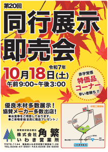 株式会社 角繁 - 2025.09.18第20回 工務店様・大工様同行展示即売会(いわき)のお知らせ